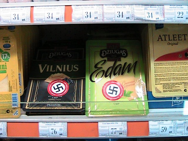 После того, как литовский суд признал свастику историческим наследием Литвы, ее изображение появилось на продуктах, производимых в этой стане. По крайней мере именно об этом написано в ru_politcs.