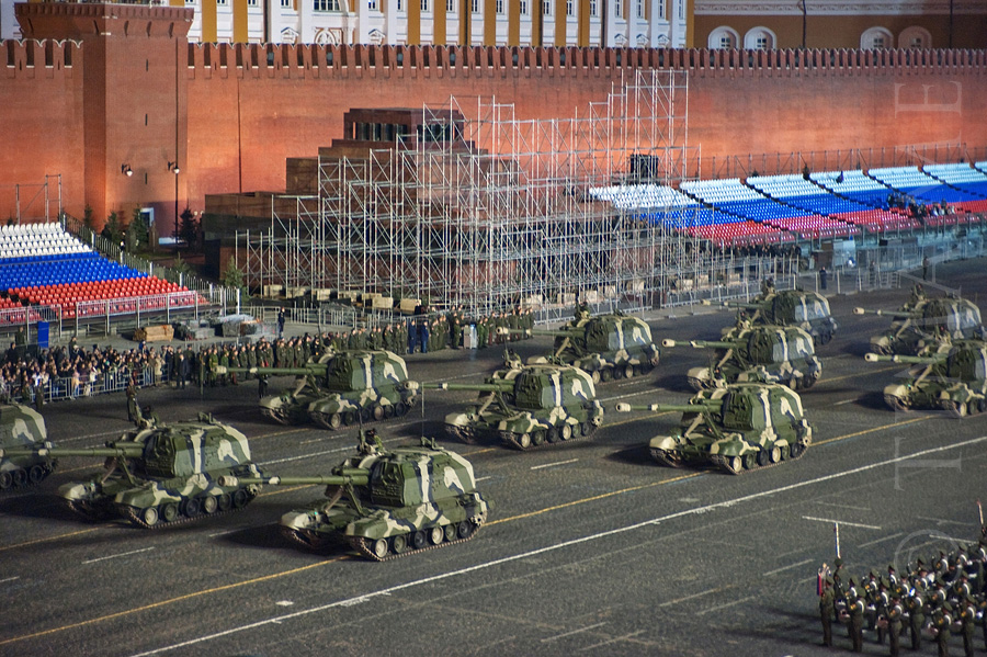 Год назад я и maksmasterov забрались по лесам на крышу здания, выходящего на Красную Площадь и отсняли репетицию парада.