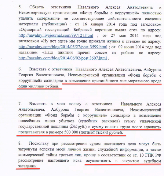 | Наш лицемерный обладатель бобрового воротника решил выслужиться круче всех. Принесли иск от него. Не просто традиционный единороссовский "иск к Навальному", а аж ко мне, к Албурову и всему ФБК.