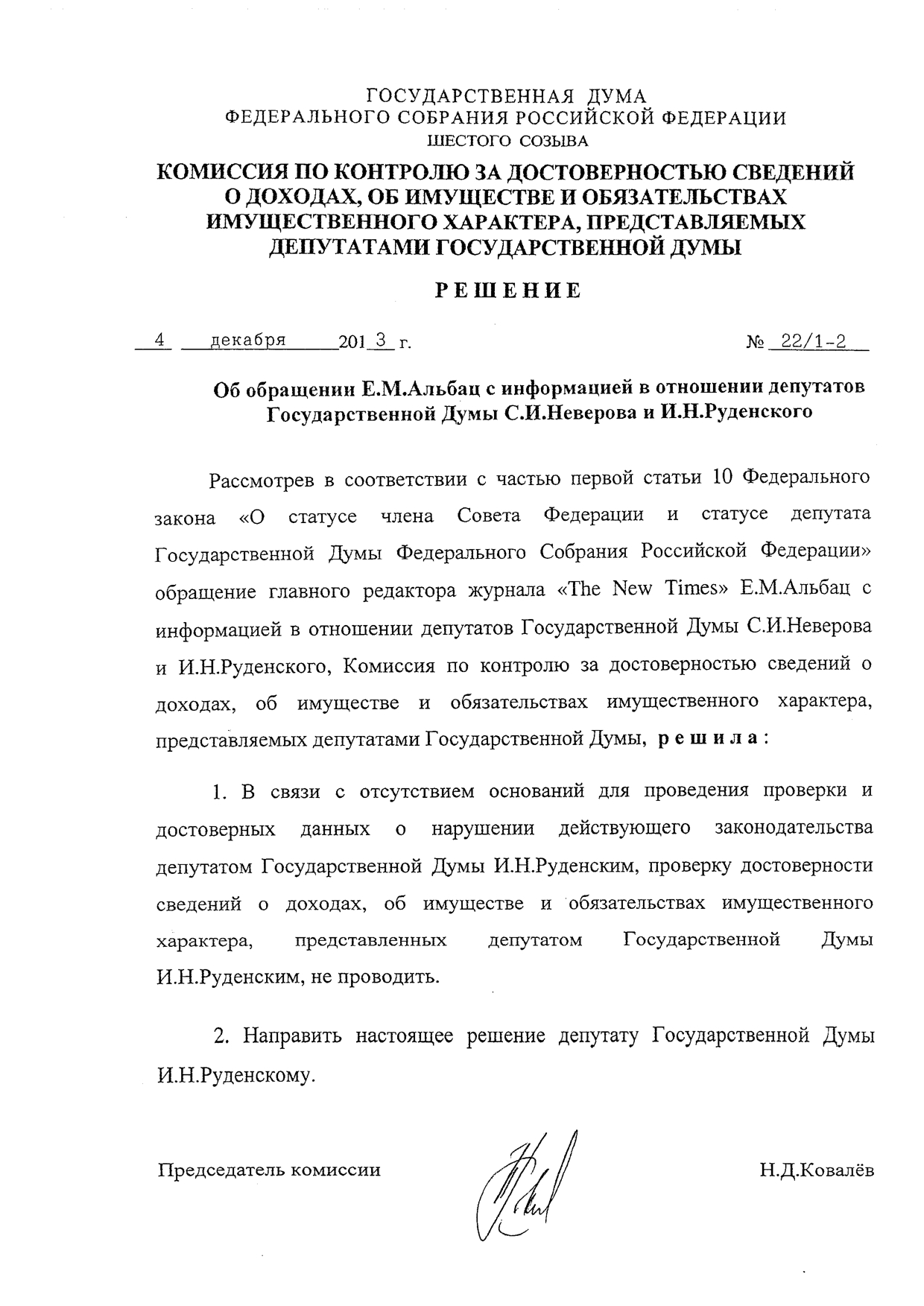Руденский утверждает, что не получал выгоды в натуральный форме от предпринимателя Шустенко. При этом чиновнику по нерыночной стоимости достается в пользование земля, а бизнесмен, сдающий эту землю, удивительным образом оказывается победителем множества московских тендеров ЖКХ. Участок Шустенко, площадь которого по нашей оценке составляет 4250 кв.м. (по данным Руденского 4300 кв.м.), был фактически получен его фирмой в начале 2012, так как в январе он арендовал его у государства. По словам Руденского и Неверова, они начали субарендовать этот участок в январе 2013, то есть, они утверждают, что арендованный под них участок стоял без дела весь 2012 год. Очевидно, таким образом они хотят объяснить отсутствие участков в декларации 2012 года. В своем заявлении, опубликованном на сайте Эха Москвы, Руденский ссылается на решение ДНП «Сосны» облагородить территорию участка, принадлежащего кооперативу и «разбить» его на куски, возведя забор соответственно: Утверждение о том, что ДНП «Сосны» потребовалось 2.5 года для «облагораживания» и так вполне облагороженного участка, без капитальных построек или лесного массива, является абсурдным. Про дом он прав, никто не спорит. Однако этим утверждением, Руденский однозначно подтверждает, что участками, на которых строится дом, он начал пользоваться в 2012 году. Каким образом можно строить дом и не пользоваться участком? Вывод из этого один - информация в декларации за 2012 год неверная. После ознакомления ФБК с содержанием «утечки» на известном ресурсе Шалтай Болтай, мы убеждены, что нарушения антикоррупционного законодательства Руденским отнюдь не ограничиваются сокрытием недвижимости. Из материалов на опубликованных на сайте, становится понятно, что образ жизни этого депутата не сопоставим с его официальным доходом в 2-2.5 млн рублей в год. Например, смета на дом, стоящий на этом участке, составила в районе 45 млн рублей, что в 18 раз превышает годовой доход, декларируемый депутатом. Также Игорь Николаевич приобретает мебель и другие предметы интерьера, каждый из которых сравним с его годовым окладом. 3. Ну, и последнее. По поводу дохода в натуральной форме. Факт получения дохода подтерждается тем, что в своей декларации за 2013 год Руденский указал участок Шустенко, как находящийся в безвозмездном пользовании. Безвозмездное пользование чем-либо, за что иное лицо было бы обязано выплачивать ренту, очевидно является формой дохода. По аналогии с примером возмещения транспортных расходов или расходов на отдых, запрещенных законом «о противодействии коррупции». В силу п. 7 ч. 3. ст. 12.1 Федерального закона от 25.12.2008 N 273-ФЗ "О противодействии коррупции" лица, замещающие государственные должности Российской Федерации, не вправе получать в связи с выполнением служебных (должностных) обязанностей не предусмотренные законодательством Российской Федерации вознаграждения (ссуды, денежное и иное вознаграждение, услуги, оплату развлечений, отдыха, транспортных расходов) и подарки от физических и юридических лиц. Я уверен, что любой независимый суд, ознакомившись с нашими аргументами вынес бы решение в нашу пользу. А депутат Руденский был бы лишен мандата. А его явно незаконное оборгащение должно быть предметом для уголовного следствия. Да, пока всё наоборот: под следствием и арестом я, а депутат Руденский продолжает строить