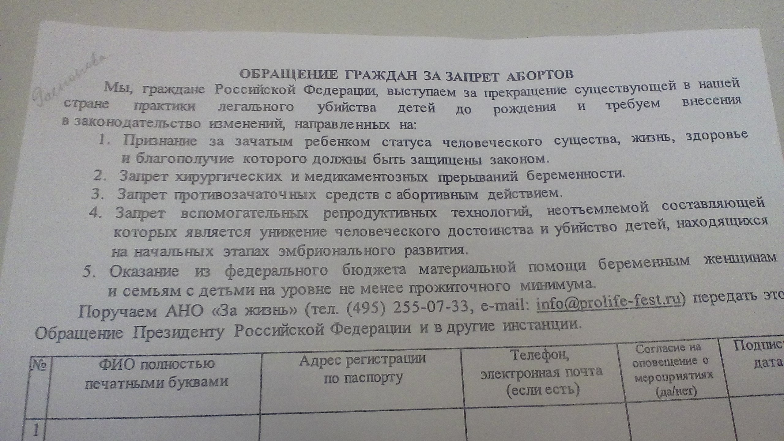 Подписи за запрет абортов