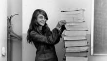Ведущий инженер-программист в проекте пилотируемой программы полётов к Луне "Аполлон" Маргарет Гамильтон стоит у распечатки написанного ей кода для бортового компьютера "Аполлона". Во многом благодаря ей Армстронг и Олдрин стали первыми людьми на Луне
