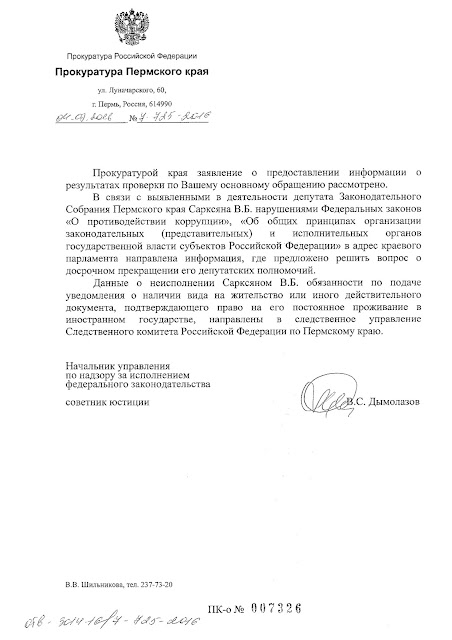 - депутата “Единой России” Вагаршака Сарксяна лишить мандата - до 03.10.2014 Сарксян не уведомил ФМС о наличии у него вида на жительства. Передать материалы СК для возбуждения уголовного дела. К уголовным делам Сарксяну не привыкать. 3 месяца назад на него уже возбуждали дело о махинациях с налогами, но оно было довольно быстро закрыто. |