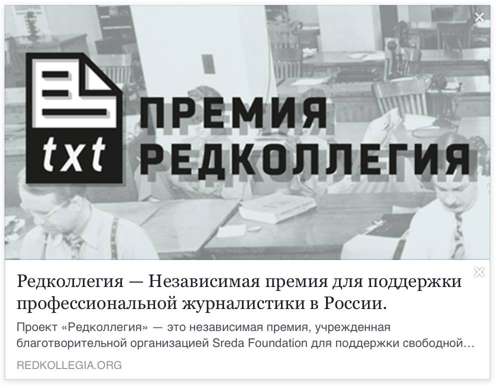 У меня есть новость.Сегодня в России заработает сетевой проект, который, я надеюсь, станет важным и нужным для двух пород людей, не очень часто встречающихся в сегодняшней России. Но среди тех, кто читает эти мои заметки, таких, по-моему, немало. Это те, кто в качестве своей собственной профессии выбрал журналистику. И это те, кто, глядя на журналистику как бы со стороны, с позиции читателя, потребителя, - считает что она, именно как профессия, как достойное ремесло, в России все же не должна сгинуть, рассосаться под давлением окружающих политических обстоятельств. Вот вниманию всех этих людей теперь рекомендуется «ПРЕМИЯ «РЕДКОЛЛЕГИЯ». И жить она будет вот здесь - на сайте, который с сегодняшнего дня заработает в полную силу: www.redkollegia.org То есть на самом деле этот замысел уже развивается не одну неделю, а сегодня просто станет публичным, потому что мы объявляем о первых результатах и предлагаем всем, кому он кажется интересным и полезным, подключаться. Идея чрезвычайно простая: выбирать из ежедневного потока публикаций по всей России (и даже шире - на русском языке), где бы они ни появились - в бумажной прессе или в электронной, в профессиональных изданиях, в социальных сетях или в персональных блогах, - по-настоящему качественные тексты. Такие тексты, которые сделаны разумно, ответственно, с пониманием требований профессии и с уважением к этим требованиям. И напрямую, без всяких посредников, поощрять их авторов. Не редакции, не издательские дома, не медиакорпорации, а именно авторов: живых людей, с реальными именами и лицами. Вот поощрять просто самым очевидным и понятным профессионалу способом: деньгами. И никому ничего не заказывать, не поручать, ни с кем не обсуждать наперед никаких замыслов и намерений: речь идет только об уже сделанной работе, об уже опубликованных, выданных на-гора текстах. Можно было бы назвать это гонораром, но правильнее все-таки называть традиционно - премией. Бывают же редакционные премии, которые присуждают редколлегии разных изданий своим сотрудникам? Ну вот, мы будем еще одной самопровозглашенной «редколлегией», которая возьмется, в меру сил и осведомленности, награждать лучшие материалы по всей стране. Причем, это будет не ежегодное громкое и помпезное событие с дипломами, статуэтками, цветами, огнями рампы и пресс-воллом в фойе. А почти рутинное, рабочее занятие, именно что не праздник, а процесс: премии «Редколлегии» предназначены для присуждения новым лауреатам каждый божий месяц. Посмотрите на сайте «Редколлегии» небольшой «манифест», с которого там все начинается: из него, мне кажется, становится вполне ясно, зачем все это делается, и каковы самые общие критерии выбора лауреатов. И в финале страницы - «Правила Редколлегии» - техническая процедура, по которой будут приниматься, то есть, на самом деле, уже принимаются, решения. Все вот тут: www.redkollegia.org Первых лауреатов - авторов первых шести награжденных материалов - вы уже можете видеть там же. Каждый месяц список будет обновляться. Каждый месяц будем объявлять еще несколько (заведомо не больше пяти, но чаще двух-трех) награжденных. Деньги, заметим, в премии довольно значительные: ежемесячно будет распределяться рублевый эквивалент нескольких тысяч долларов. Рядом на сайте будет всегда видна постоянно обновляемая группа «Претендентов», из числа которых