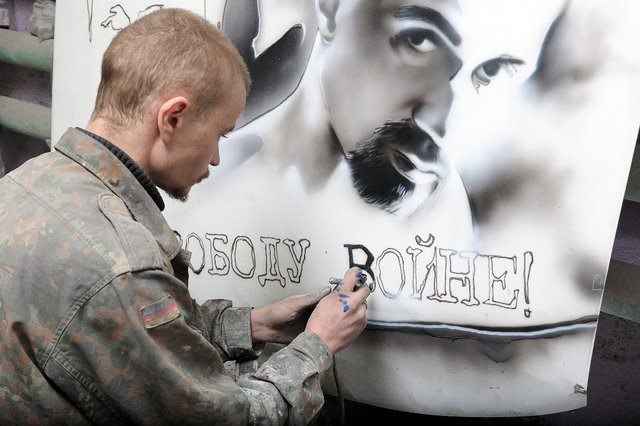 Вчера приезжали снимать для очередного журнала, на этот раз - журнал автомобильной тематики. Но примечательно не это, главное то что снимали. Фотосессия того как я рисую капот тойоты с портретами активистов и надписью "Свобода Войне!"