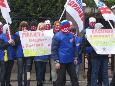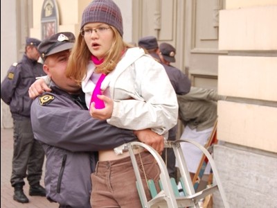 | Активисты ДСПА заменили плакаты Экономического Форума в СПб (Источник) |