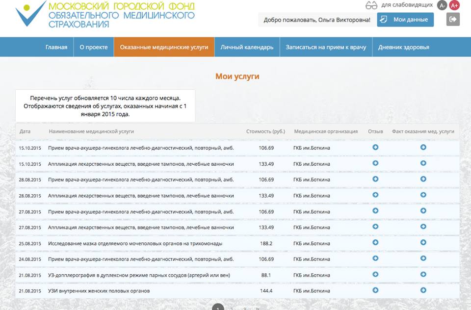 Я не поленилась и зашла на свой личный кабинет вhttp://www.mgfoms.ru/. Господа, я очень, очень больна. Хотя меня лечат. Несмотря на то что я живу почти год в Израиле. Как только я в марте улетела из России - так в апреле начали лечить. У гинекологов из Боткинской больницы длинные руки. Весь август лечили в г. Генуя ( Италия ), продолжили лечение в октябре, в Израиле. Список на 3-х листах. Ванночки, апликации, УЗИ, приемы специалистов. 35 процедур и приемов с апреля. в среднем по 100 руб каждый ( от 24 до 266 рублей ). Пустяк, около 4000. Но если умножить на сколько там миллионов живет в Москве? И не только в Москве?
