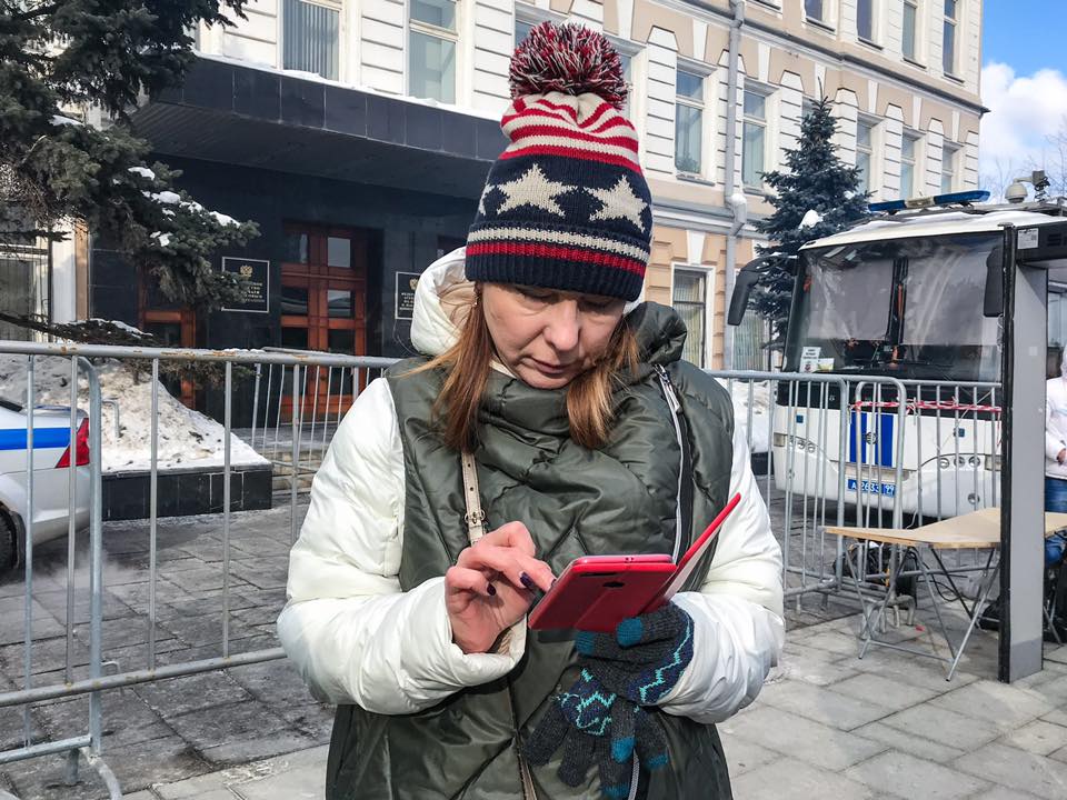 Итак! Обещанные немаловажные детали "Марша Немцова". Знакомьтесь - замглавы управы Тверского района Светлана Александровна Золотова. Именно её сегодня назначили отвечать за цензурирование всей наглядной агитации, проносимой на территорию марша... И Светлана Александровна блестяще справилась с поставленной задачей - она забраковала все тексты с упоминанием Путина и те, в которых содержалось слово "аннексия"... Светлана Александровна не самостоятельно принимала решения, она бегала консультироваться в штабной автобус, который вы видите за её спиной... Но отвечать придется именно ей. Мы несомненно инициируем преследование этой чиновницы, причем, не только в России. А еще я обещал ей сегодня, что к вечеру она станет героиней Фейсбука... Не подведите меня!