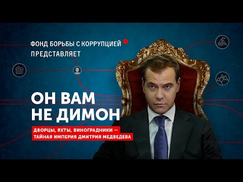 2.03 13:24 | Секретные дворцы, виноградники и яхты Дмитрия Медведева. Самое большое на сегодняшний день расследование Фонда борьбы с коррупцией. Навальный с коллегами документально описали империю премьер-министра, состоящую из сети благотворительных организаций, оформленных на его доверенных лиц. Олигархи и государственные банки своими взятками накачивали эти благотворительные фонды, а потом деньги тратились на строительство и покупку роскошной недвижимости в России и за рубежом. Документы, подтверждающие каждый факт, изложенный в фильме, содержатся в текстовом расследовании — https://dimon.navalny.com