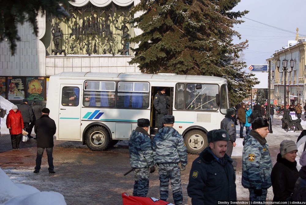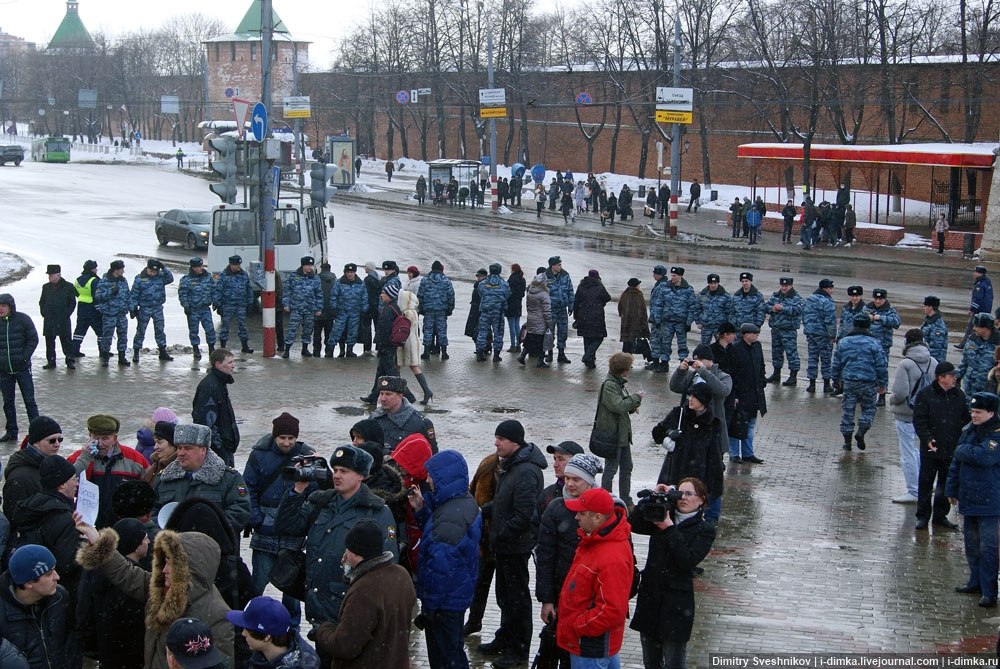 Сегодня должно было состояться гражданское шествие по ул. Большая Покровская с основным лозунгом "Россия без Путина", по окончанию шествия на пл. Минина участникам была запланирована осада кремля (не уходить с площади, а оставаться в палатках). Но сотрудники полиции воспрепятствовали планам митингу