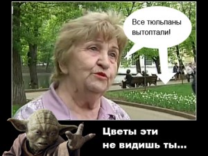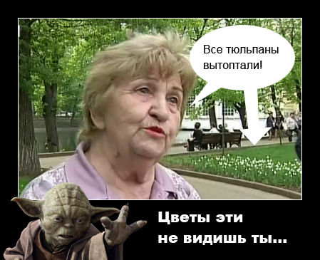 Как и предсказывали, по сурковским каналам показали сюжет о том, что якобы "лагерь повстанцев" местным жителям мешает, показали бабульку, которая рассказала: "повытоптали все тюльпаны, они спят на этой траве и днем, и ночью, они испражняются где хотят и как хотят". Ну и так далее. Типичная такая злая бабулька, которая на лавке сидит и за всем следит.
