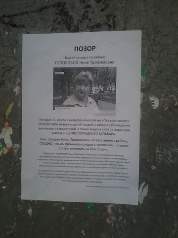 Молодцы, москвичи! Уважаю. Адекватный ответ. Этот инфощит расположен аккурат на улице где проживает "госпожа соврамши", очень хочу надеятся что ей стыдно и погано на душе, и что за хлебом она теперь ходит надвинув шляпу на лоб, быстрым шагом...