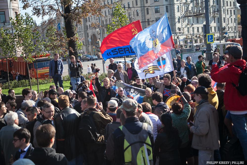 | Главное впечатление от "Марша мира": Москва - это даже не Донецкая область, а, как минимум, Крым. Только с обратным знаком. 95% жителей города - за дружбу с Киевом и против российской власти, максимум 5% - за "Новороссию" и войну (эти тоже сегодня вышли к нашему шествию - во главе с Кириллом Фроловым и прочими "ДНРовцами", просто их было мало и очень мало). Появятся завтра в городе "зеленые человечки", через 2 недели на референдуме 97% проголосует за выход Москвы из РФ и вступление в Евросоюз. |