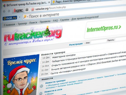 | Крупнейшей BitTorrent-трекер RuTracker.org перестал работать. По непроверенной информации, на серверах случился пожар. Ранее сайт подвергался массированным DDoS атакам. Блогеры подозревают умышленное уничтожение Рутрекера, наследника Торрентс.ру | |||||||||||||||||||||||||||||||||||||||||||||||||||||||||||||||||||||||||||||||||||||||||||||||||||||||||||||||||
