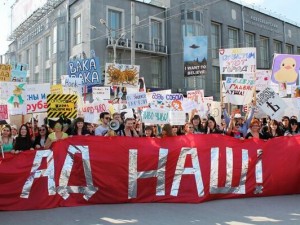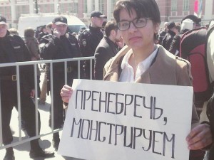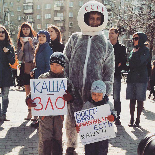 У Артема Лоскутова со товарищи какое-то нереальное умение в 2 словах выразить самое главное, что можно вообще сказать. Центральный лозунг новосибирской монстрации-2015 --- "Господи прости" (мы в Ярославле сделали рифмовку, и Lev Biryukov бОльшую часть пути нес его кверх ногами --- наверное, чтоб оттуда лучше читалось). Монстрация-2014, посткрымская -- "Ад наш". С того момента это стало ровно так. Монстрация-2013, Новосиб -- "Вперед в темное прошлое". Тоже главное, что можно сказать о 2013-м. 2012: "Мы это вы", 2011 -- "Система, а чо ты такая нервная": в мае еще можно было ждать от нее не совсем бессмысленного ответа. То, что до этого, можно рассматривать как тренировку, подготовительный этап, но вот с 2011-го ребята очевидно достигли совершенства.