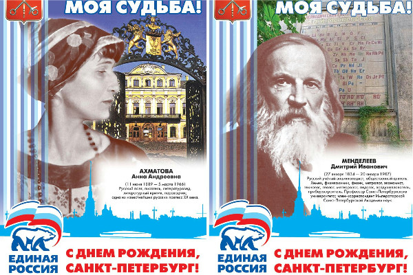 | В Санкт-Петербурге демонтируют плакаты "Единой России" с портретами известных ученых и деятелей культуры, вывешенных ко Дню города |