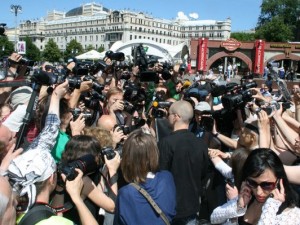 Приехал к 13.40.Стою жду со стороны Большого Театра.Со мной рядом 2 молодых парня оператора из "РОССИИ" сидят на каменной скамейке у фонтана,рядом с остановкой телекомпания "Мир".Фотографов очень мало.Фоткаю ментов и ОМОН,которые находятся у памятника К.Марксу.В сквере у памятника менты в парадке,чуть далее солдаты-срочники вроде.Где то в 13.58 к ментам присоединяются дружинники толтообрюзжего вида,человек 5.Болтают с ментом у забора.У мента матюгальник.Ничего не происходит.Проносится полицейский кортеж,а за ним поливальные машины.14.15.У К.Маркса менты,солдатаы,ОМОН в автобусах.Все тихо,еду домой.