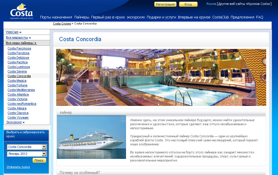 Никто из итальянских журналистов не верит утверждениям капитана Coata Concordia, что он налетел на "скалы, не обозначенные на картах". Никаких скал, не обозначенных на картах, там нет со времен Магеллана. Уже установлено, что он налетел как раз на скалу, вполне себе обозначенную на карте, потому что отклонился от маршрута, и весьма существенно. Зная итальянцев, вполне верю.